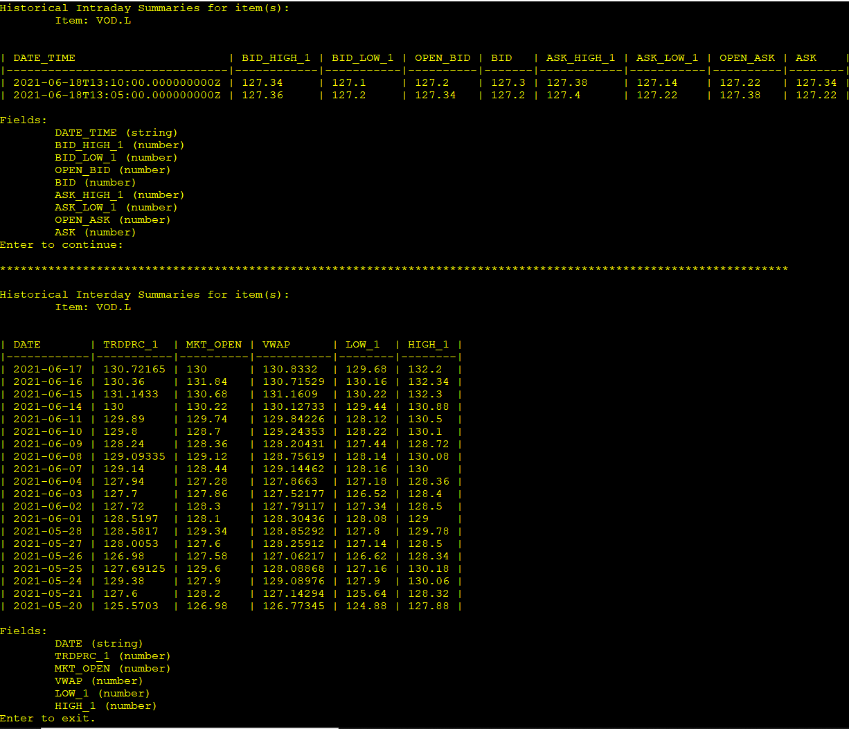 .Fields("DATE", "TRDPRC_1", "MKT_OPEN", "VWAP", "LOW_1", "HIGH_1")