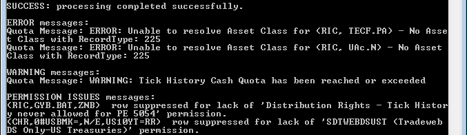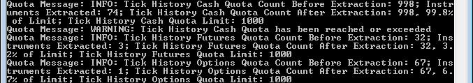 Quota Message: WARNING: Tick History Cash Quota has been reached or exceeded