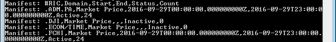 Manifest: #RIC,Domain,Start,End,Status,Count