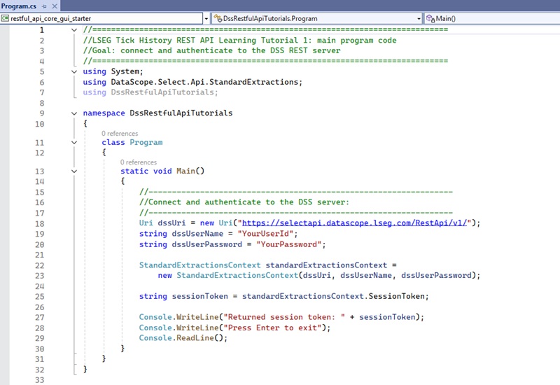 //LSEG Tick History REST API Refactored Tutorial 1: DssClient class