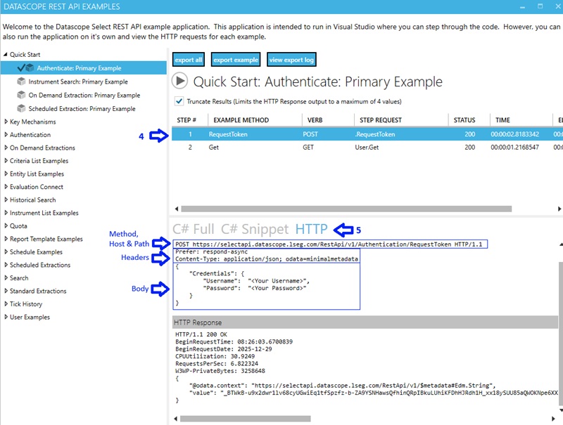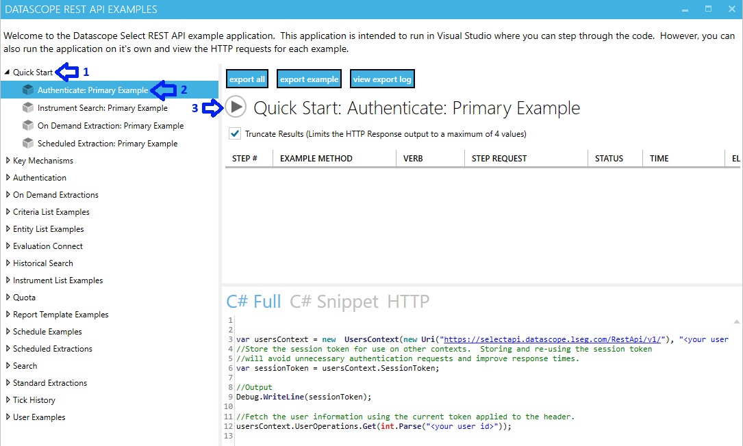 If you have not yet gone through the Quick Start, do it now before proceeding further, as that is where you discover the REST API C# example application, a powerful learning tool also useful when programming in pure HTTP, without using the .Net SDK. The Quick Start also describes its installation, and how to run it, even without a compiler.