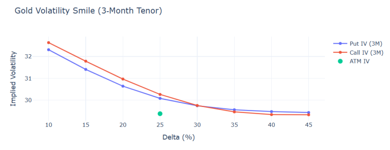 title="Gold Volatility Smile (3‑Month Tenor)",